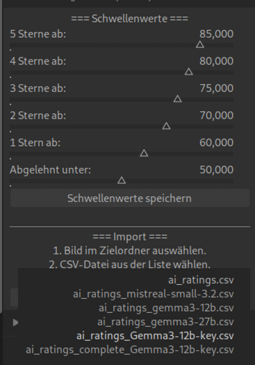 Bilder Rating – Anzahl der Kriterien 5/10/17