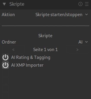 ai_config.json-Datei nach deinen Vorstellungen. - darktable starten: Das Skript lädt automatisch. Es erscheint im rechten Panel der Lighttable-Ansicht.